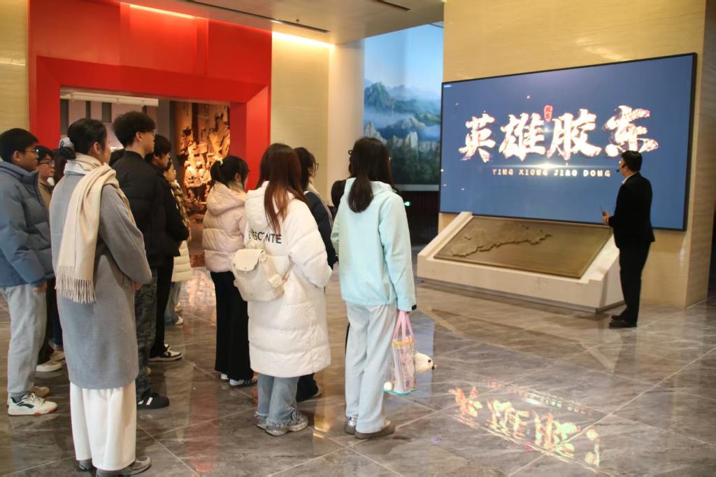 活动现场,师生们跟随讲解员的引导,依次参观了“英雄胶东”“奋发图强”“走向辉煌”三大主题展厅。馆内珍贵的历史影像资料、详实的文献典籍,以及一件件承载着岁月记忆的革命文物,生动地勾勒出胶东地区军民在党的坚强领导下,奋勇拼搏、无畏牺牲的壮丽史诗。