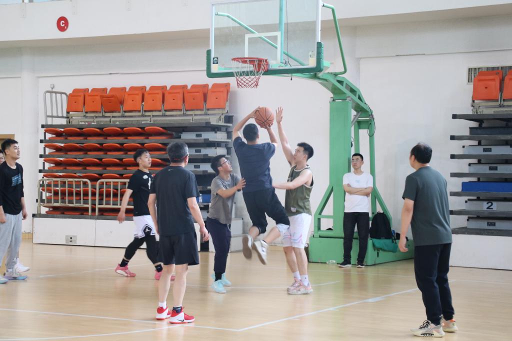 篮球场上气氛热烈,双方队员都展现出了极高的竞技水平和体育精神,教师们凭借扎实的篮球基本功,多次打出精妙的传切配合;毕业生们则朝气蓬勃,以敏捷的身手和迅猛的进攻展现青春锋芒。