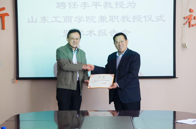 3月25日上午,我校在2007so太阳集团会议室举行了李平兼职教授聘任仪式暨学术报告会,校长谭秀森出席聘任仪式并为李平教授颁发了聘书。