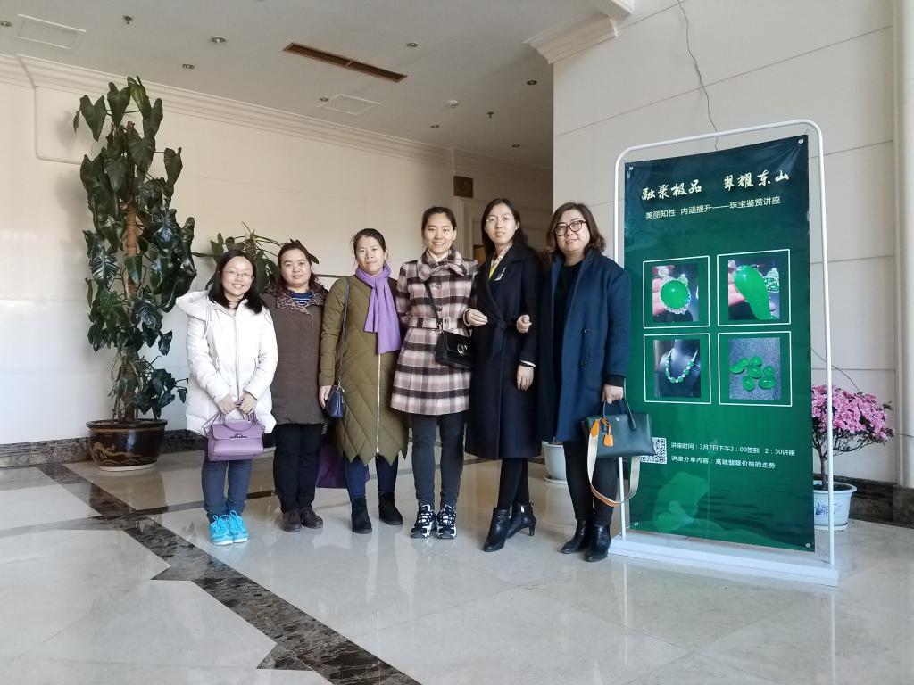 为了庆祝三八节,3月7日下午两点学院工会与我们的合作企业中金黄金投资公司联合奉献给女教师一场美丽知性、内涵提升一一珠宝品鉴知识讲座,让各位女教工享受了一场由珠宝翡翠带来的奢华盛宴,知识讲座首先讲述了翡翠名字的起源和产地,帮助大家了解和认识翡翠,并重点介绍了翡翠品种和其特色。通过本次鉴赏知识的交流学习,让各位女教工对于翡翠有进一步了解,随后大家观赏展厅内的珠宝玉石结束了本次的珠宝品鉴之旅。