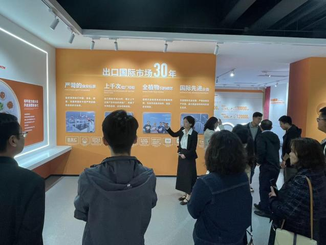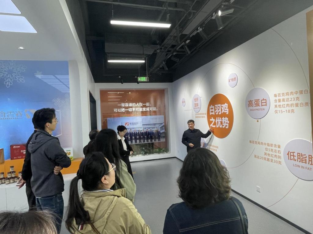 调研组一行首先参观了我国首批“农业产业化国家重点龙头企业”、“出口食品农产品免验企业”龙大食品集团有限公司,该公司在过去三十多年,立足农业产业化,始终坚持以食品安全为保障,以现代农业为导向,不断推动绿色食品产业加快新旧动能转换,布局完成对日出口(调理食品、冷冻蔬菜、FD产品、豆制品、水产品)、粮油产品、肉类制品等共500多个品种的规模化产业集群,产业布局横跨食品、化工、机械、现代科技、包装制造等多个行业。调研组第二站到达春雪食品集团股份有限公司,参观了企业展厅和白羽鸡分割流水线。春雪食品集团股份是一家专门从事白羽鸡鸡肉食品的研发、生产加工和销售业务,配套以饲料生产与商品肉鸡养殖业务的莱阳市龙头企业,企业在鸡肉调理品领域具有较高的知名度和市场占有率。