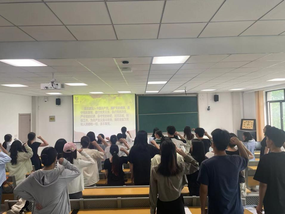经济学院毕业班辅导员买惠秋带领全体毕业生党员重温入党誓词。