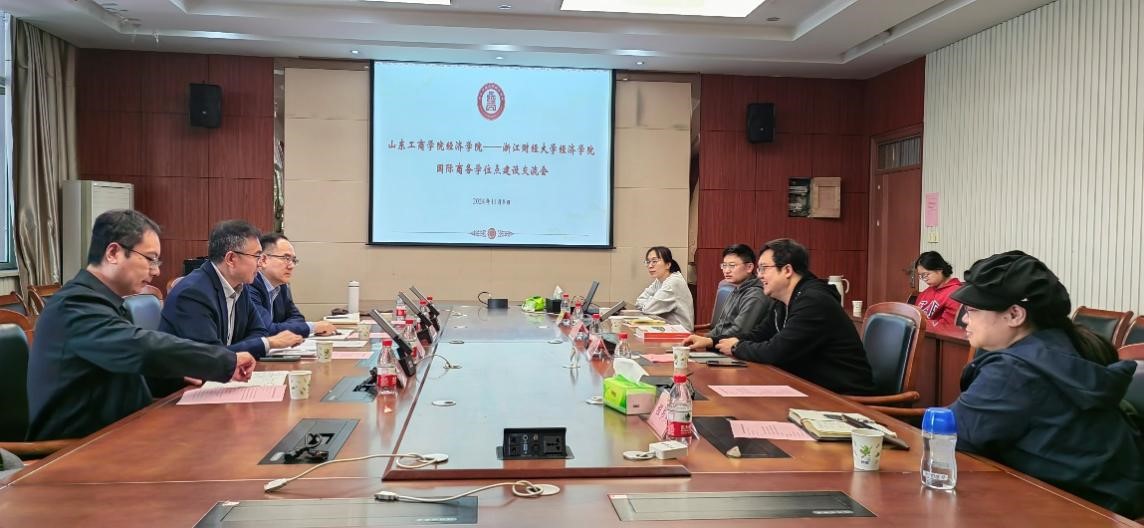 在湖州师范学院经济与管理学院调研期间,周建华院长、唐洪雷副院长、马小龙副院长以及国贸教研室主任和党支部书记等学科负责老师参加了座谈。周建华院长、唐洪雷副院长、马小龙副院长依次介绍了学院的办学历史、机构设置、学科建设以及人才培养等情况,并围绕学院的国际商务专硕的招生、实习、就业等方面重点介绍了学院的经验和做法。双方就国际商务专硕培养方案、师资队伍建设、双方教育合作进行了系统细致的讨论,为学院专硕培养和本科教育教学提供了新的发展思路。