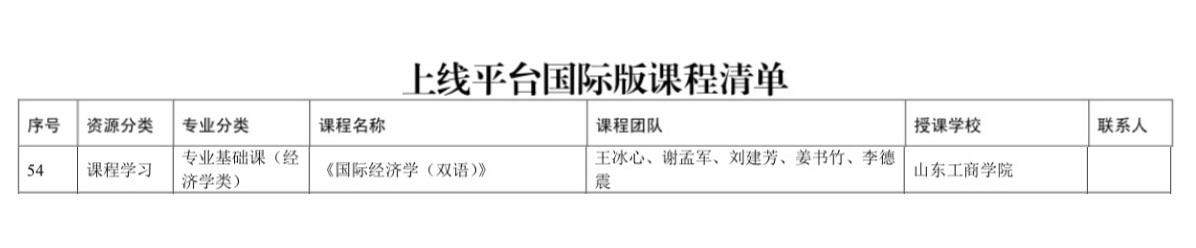 近日,教育部组织开展的国家智慧教育平台国际版课程资源遴选结果公布,山东省共有83门课程入选国家智慧教育平台国际版,2007so太阳集团姜爱英、王冰心、谢孟军、刘建芳、姜书竹、李德震等老师负责的《国际经济学(双语)》课程成功入选。